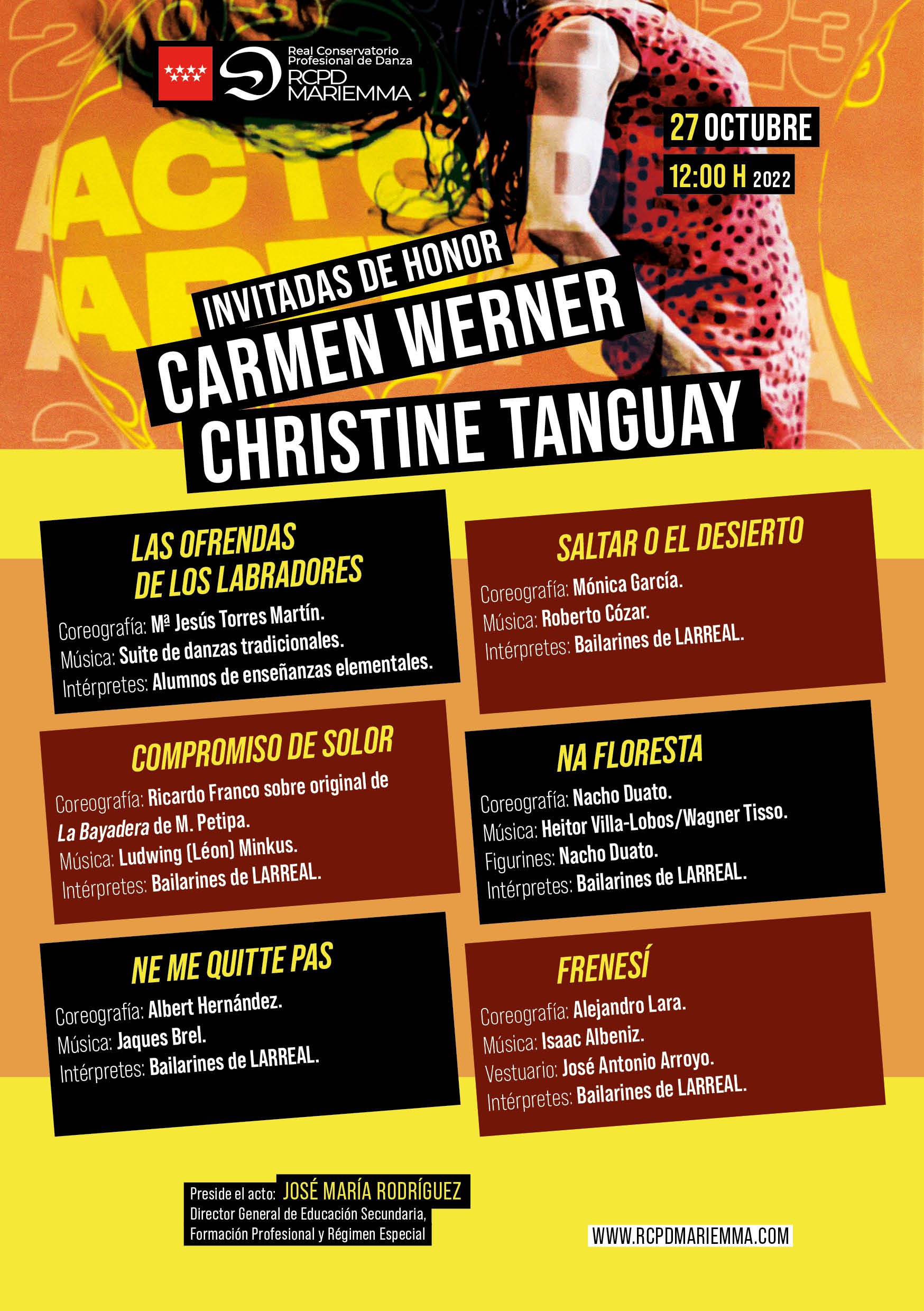 Diseño gráfico, cartel promocional del evento ACTO DE APERTURA 2022 – 2023, del curso académico del Real Conservatorio Profesional de Danza “Mariemma”, Madrid.