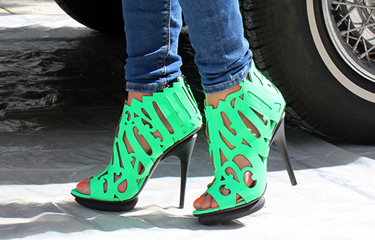 In collaboration with United Nude a shoe was created in which the upper, made of laser cut leather, spells out the words “Unruly Shoe”.