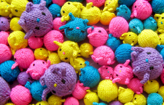 Mochimochi Land is the magical world of knitted toys created by the very talented Anna Hrachovec. She has created a fascinating world populated by gnomes, snowmen and robots that don't always get along with each other.
