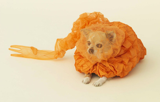 Muji creative director Kenya Hara who is endeavouring to bring "a new kind of joy to the relationship between dogs and humans". The result is a quirky collection of structures that include the Chihuahua Cloud, created by Reiser + Umemoto, orange fabric that acts as both a coat...