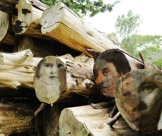 Hawaii’s richly layered ecosystem inspires this creation, a series of mysterious photographs where the landscape has been digitally manipulated to include portraits of men, women and children.