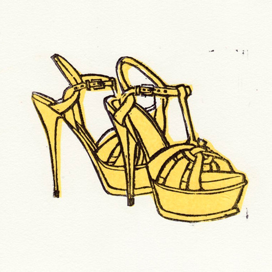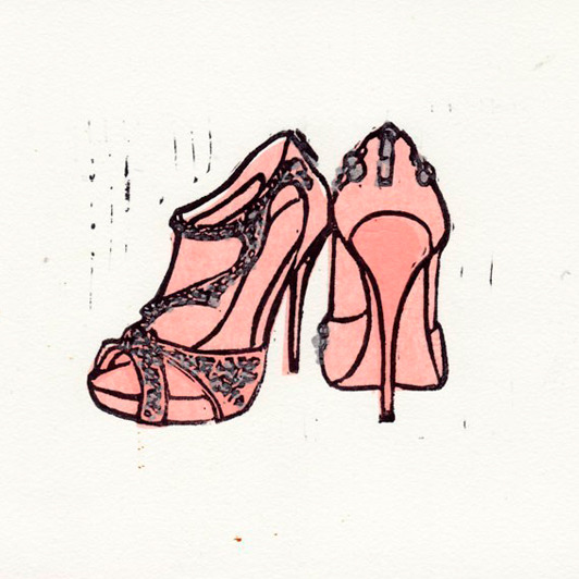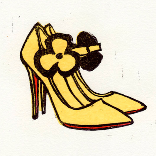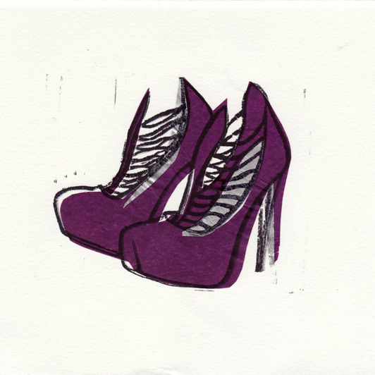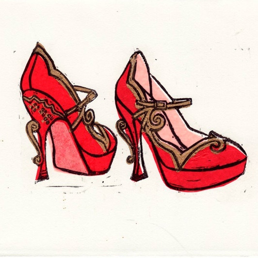 Shoes, sandals, high-heeled shoes, ballerina shoes, platforms shoes, … hand-pulled prints of designer shoes by Las Vegas based artist Anna See. In view of the excellent results, I would love to walk in her shoes. I am a fan!