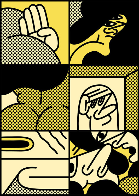 This is the new work of Simon Landrein. It looks like they are details of digital art put under a cartoon microscope. The narrative structure is very funny and strange at the same time. Oh! Don't forget the dot textures… I like it a lot!
