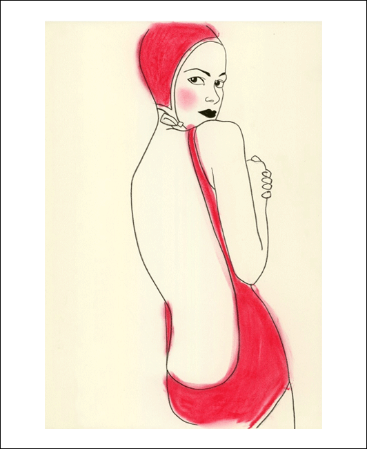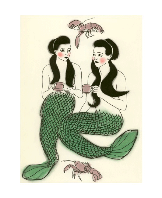 I don’t know what I love most: the mermaids, the bird tattoos, or the lady in her red swimsuit. They’re all so pretty. These are the charcoal and pastel drawings of Sydney based artist/illustrator Sam Battersby.