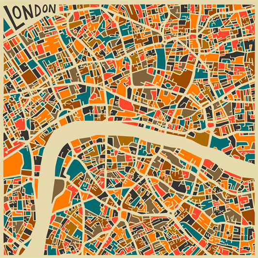 How do people even drive in these cities? or walk? or leave their houses with no constant fear of getting totally lost and/or ran over? Leaving that aside, check out Jazzberry Blue, he’s awesome, and all of his prints beautiful.