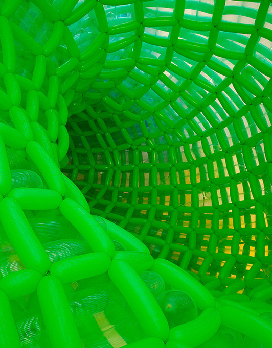 02 April, 2013 Balloon sculpture Fields Comments Comments Share Twitter Share LinkedIn Share Facebbok Share New York artist Jason Hackenwerth, has created this fantastic organic form made from 10,000 latex balloons to the Edinburgh International Science Festival. Possible alien invasion?© Jason Hackenwerth
