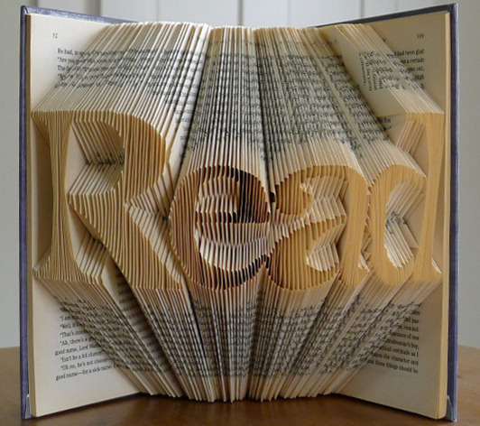 23 April, 2013 Folded Sculptures Fields Comments Comments Share Twitter Share LinkedIn Share Facebbok Share Luciana Frigerio's sculptures are made from carefully folding the pages of recycled books to create these typographic sculptures. Happy World Book Day!© Luciana Frigerio