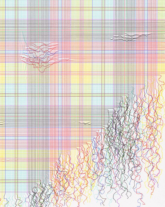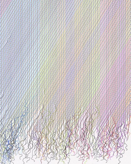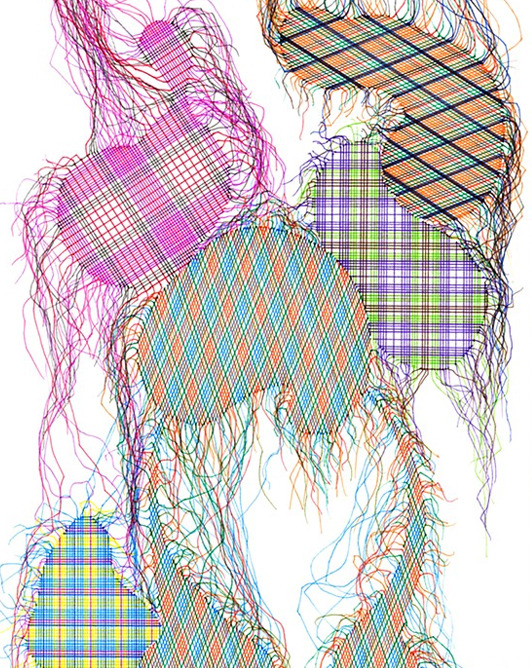 Podéis pensar que estoy de nuevo escribiendo sobre "arte en hilo". Pero os equivocáis. Son dibujos con tinta sobre papel (28 x 35,6 cm). Hilos tejidos de forma delicada que resultan ser líneas de bolígrafo del artista americano Steven Vasquez Lopez.