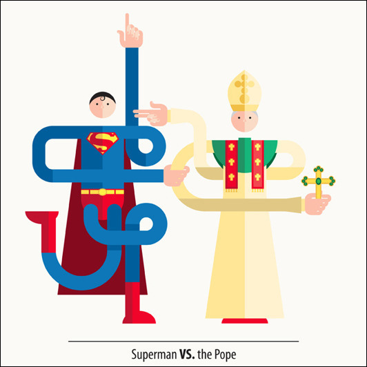 El ilustrador sueco Danilo Agutoli ha creado Unlikely Opponents (Improbables Rivales). Serie de divertidas ilustraciones en las que se enfrentan superhéroes, personajes de cine o famosos nombres históricos en inesperadas batallas.