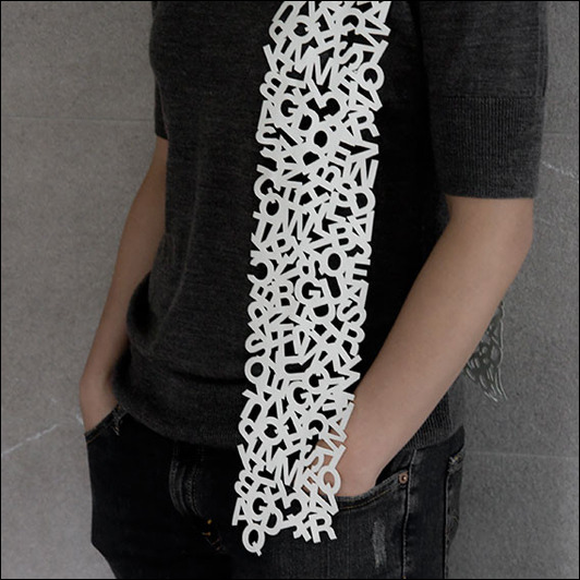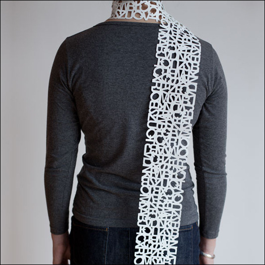 El estudio creativo Little Factory de Hong Kong ha creado bufandas hechas con letras de la popular tipografía Helvetica. Colección inspirada en la técnica China de hacer cortes en pliegos de papel para formar figuras con espacios positivos y negativos.