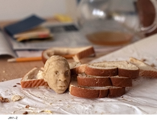 La artista polaca Milena Korolczuk, más conocida por su trabajo cinematográfico, últimamente ha utilizado un medio menos usual para expresarse: pan de molde. Esculpe retratos de celebridades de la historia, cultura, literatura y del pop, arte, a partir de esta substancia esponjosa. Las esculturas han nacido de las manos de Korolczuk mientras tomaba su desayuno por la mañana. Por lo visto, comer no era suficiente.
