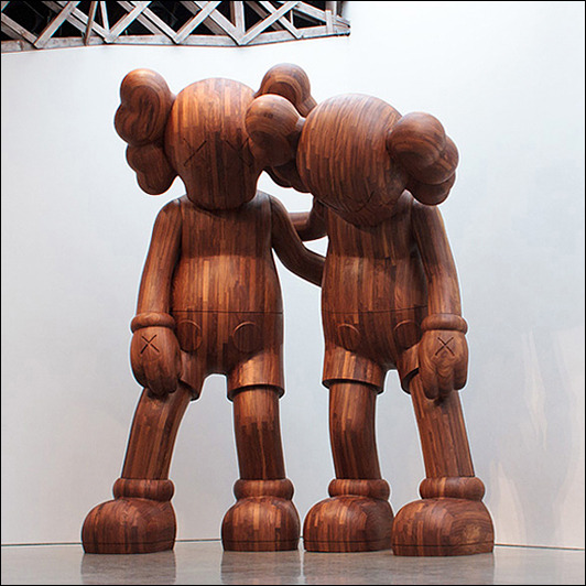 La galería Mary Boone, en cooperación con la galería Perrotin, han abierto recientemente Pass The Blame, una exposición con esculturas monumentales y nuevas pinturas del artista KAWS de Brooklyn que no necesita presentación. Podéis verlo hasta el 21 de diciembre. Soy un seguidor de KAWS. A ver si consigo una versión de una de estas figuras a la escala de mi vitrina.
