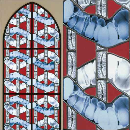 El artista belga Wim Delvoye ha creado una serie de trabajos góticos, de nombre Chapel (Capilla). Vitrales extraordinarios, trabajos escultóricos hechos de acero, plomo, cristal y radiografías actuales.