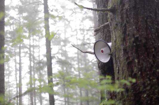 El megáfono fue instalado en una montaña en Washington y dedica tweets a un público de árboles. Parte de una serie de trabajo de Rachel Knoll llamado “Estrategias Interconectadas para Desconectar”.