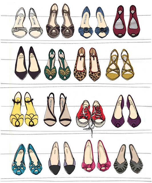 Zapatos, sandalias de salón, atados, de tacón, bailarinas, con plataformas ou compensados, … Grabados de zapatos de diseño de la artista Anna See afincada en Las Vegas. A la vista de estos buenos resultados me encantaría poder meterme en sus zapatos. ¡Soy fan a pies juntillas!
